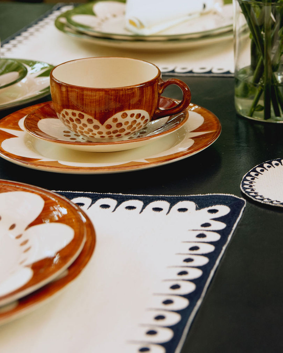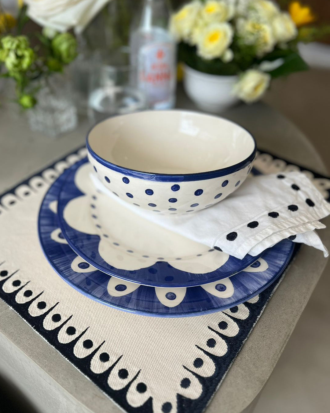 Conjunto de cuatro individuales hechos de dril de algodon 100%. Lavar en maquina, y planchar con spray de almidon.