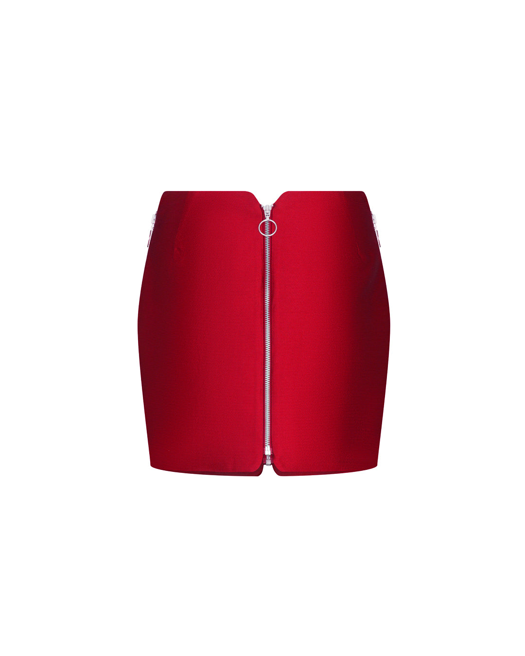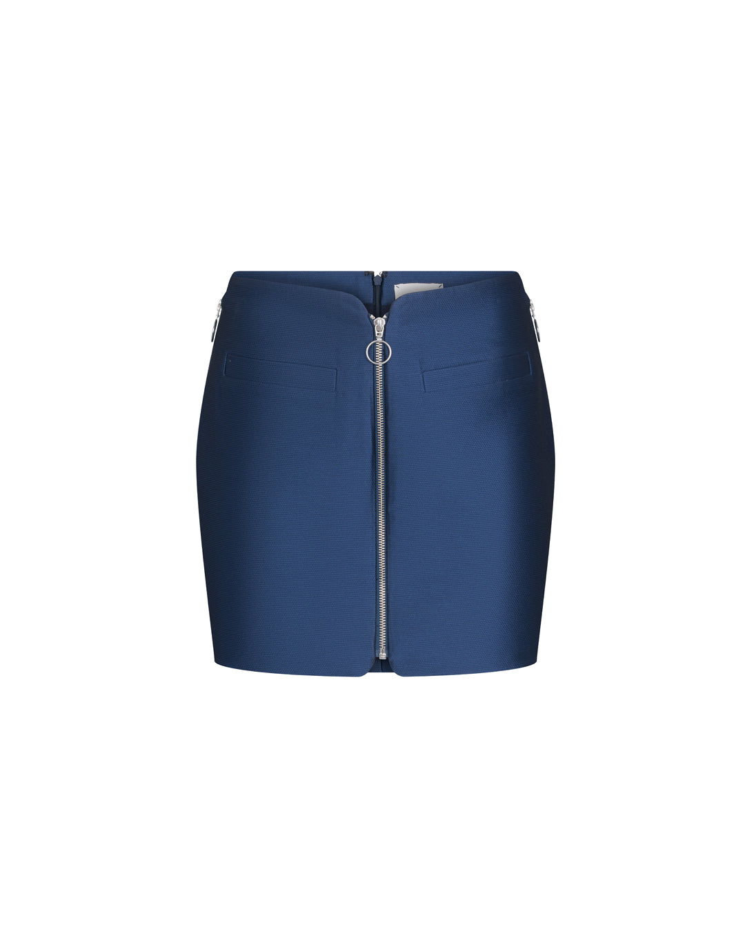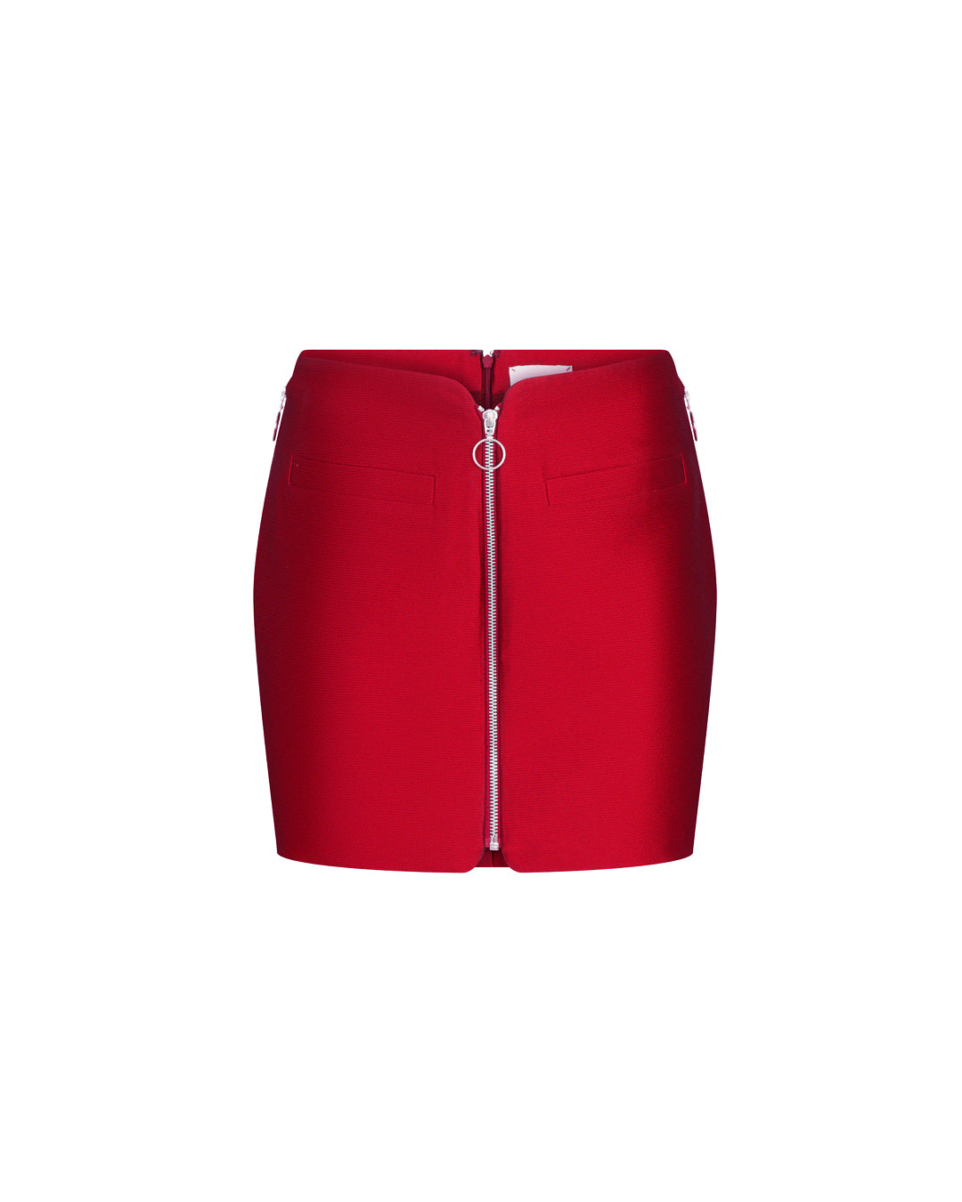 Elaborada con una mezcla de seda y tafetán, esta minifalda de cintura alta presenta un diseño de cuatro paneles con cremalleras entre cada panel, las cuales son ajustables en ambos extremos. Totalmente forrada en chiffon tonal.